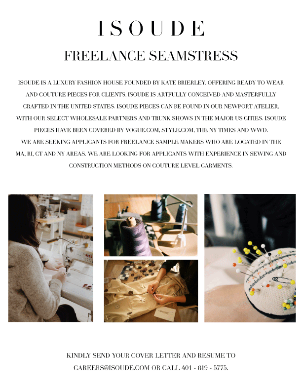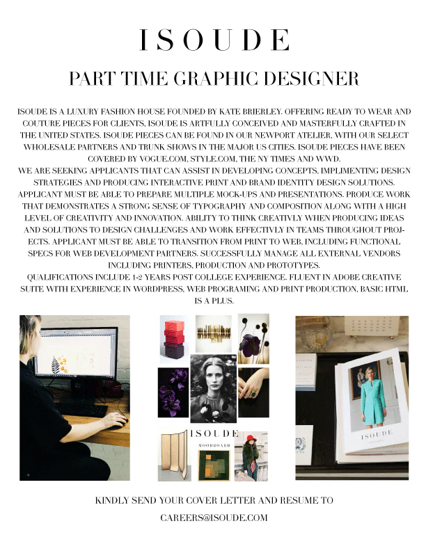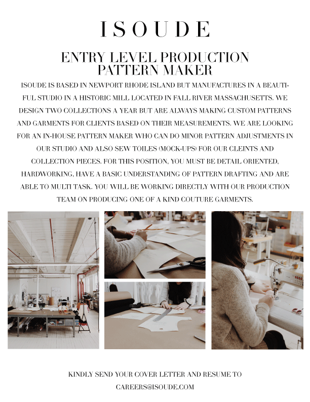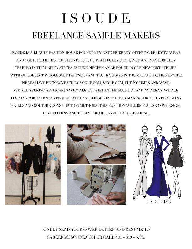 If interested please email cover letter and resume to careers@isoude.com or call 401-619-5775